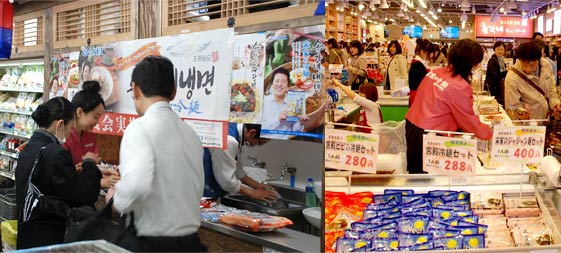 新大久保のソウル市場・チョンガクネ・k-plusで試食会を行っています。 冷たくて美味しい冷麺を食べて、プレゼントをゲットしよう! (7月から8月まで)